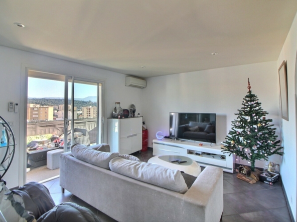 Au 8ème étage sur 9 d’une résidence avec parking et ascenseur, il se compose d’une entrée, d’une cuisine séparée et équipée avec loggia/buanderie, d’un séjour donnant sur la terrasse, de trois chambres dont une donnant également sur la terrasse, d’une salle de bains et d’un wc séparé.