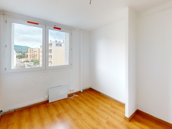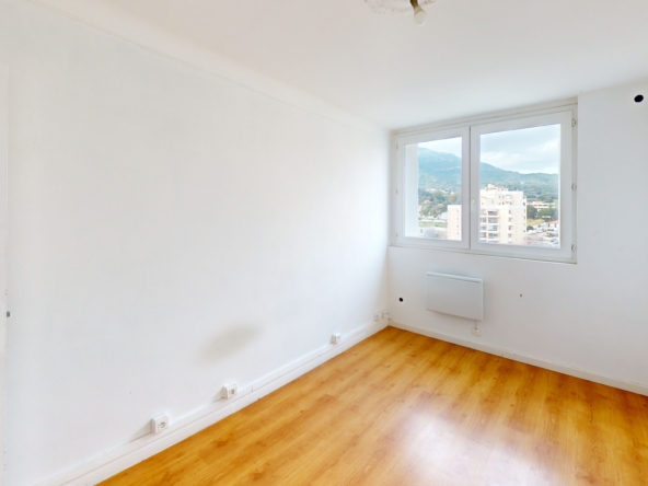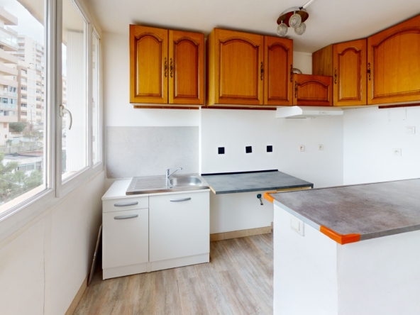 L’appartement se compose d’un séjour lumineux, d’un coin cuisine ouvert sur le séjour, de trois chambres, d’une salle de bains + WC. Grâce à sa situation en étage élevé, il bénéficie d’une belle luminosité et d’un petit aperçu mer.
