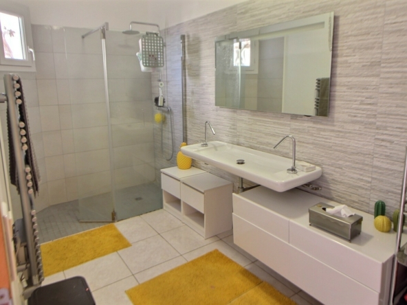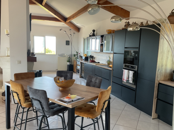 Cette villa d’architecte réalisée dans les années 2000 se compose de 4 chambres, 2 salles de bain, 2 WC, un grand séjour avec cuisine équipée neuve.