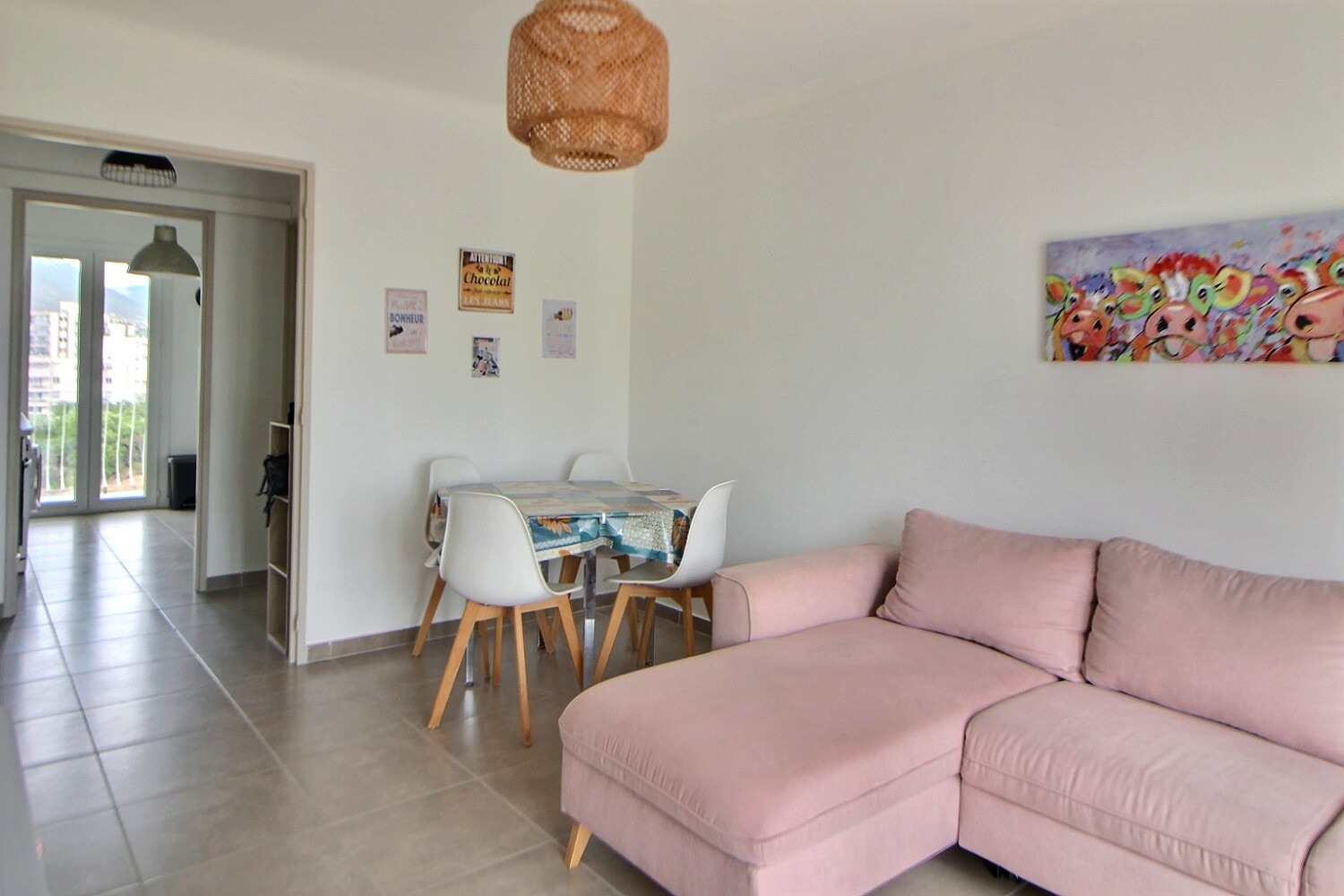 L’agence STG IMMOBILIER, spécialiste de l’immobilier à Ajaccio, a le plaisir de vous proposer à la location cet appartement de 3 pièces meublé situé dans une petite résidence rue du soleil levant, proche de toute commoditées.