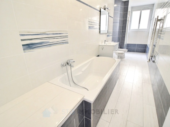 – Grande salle de bain équipée d’une douche et d’une baignoire, avec WC
