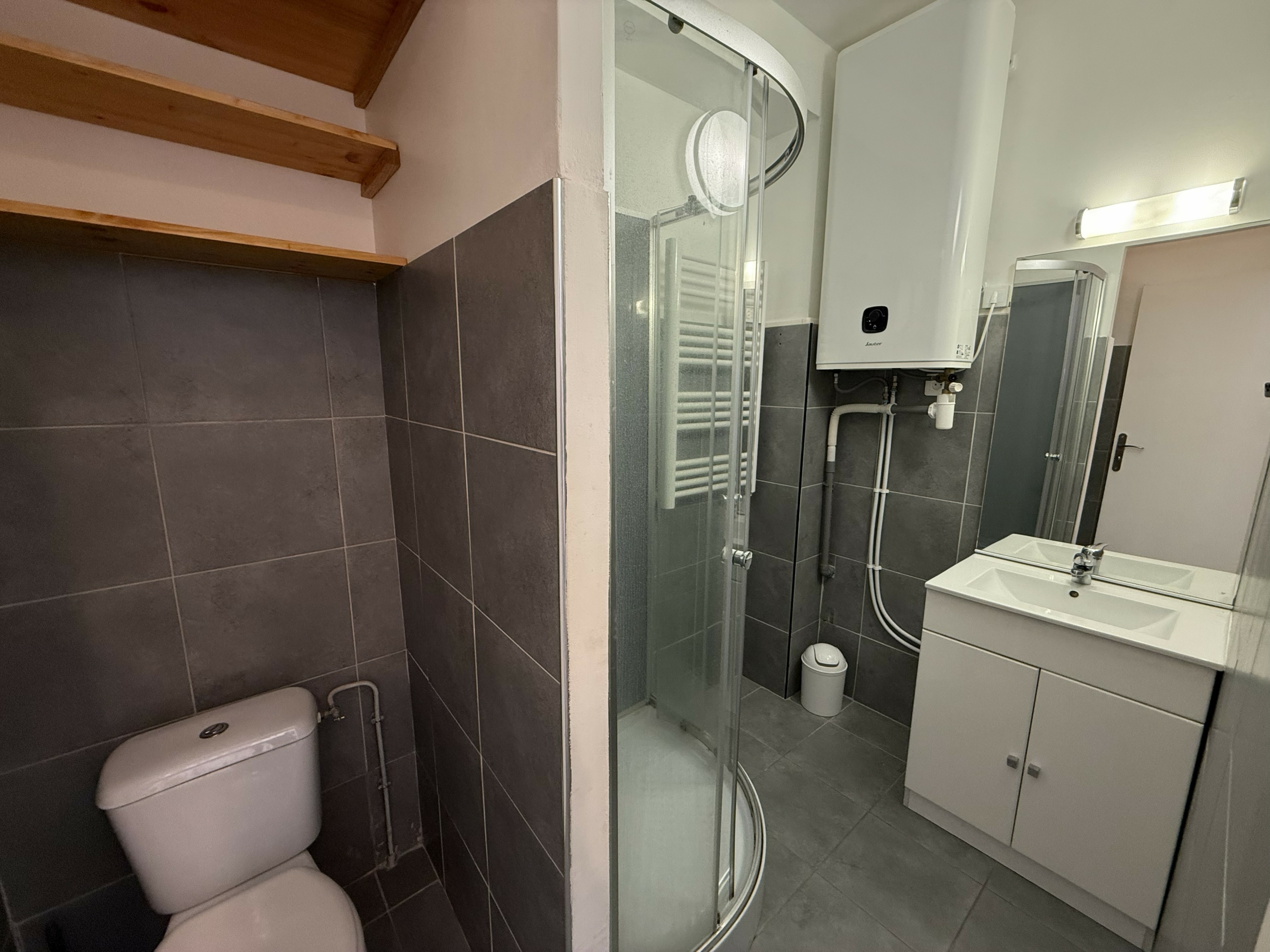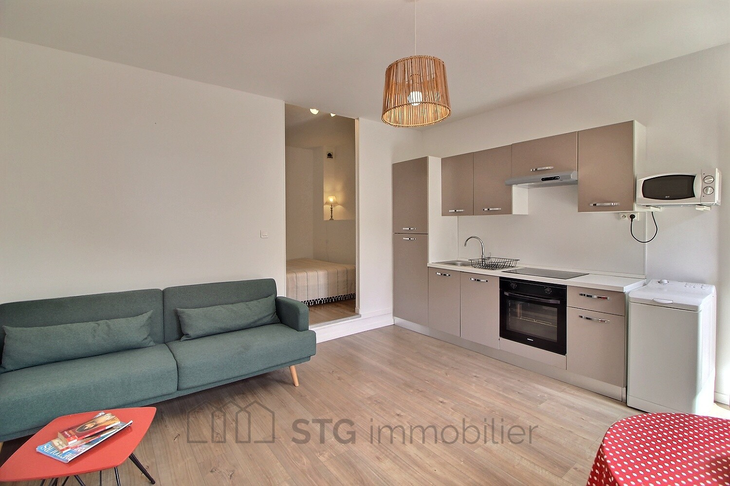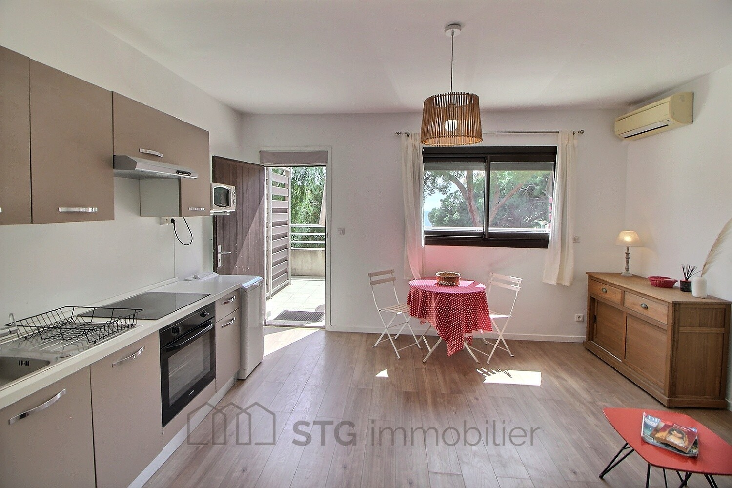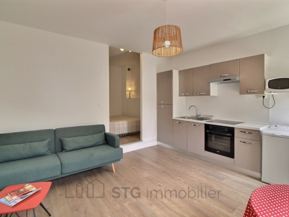 Un charmant séjour/cuisine d’une supercie de 17,54 m², un coin nuit avec dressing aménagé de 7,12 m² et une salle d’eau avec WC de 3,75 m².