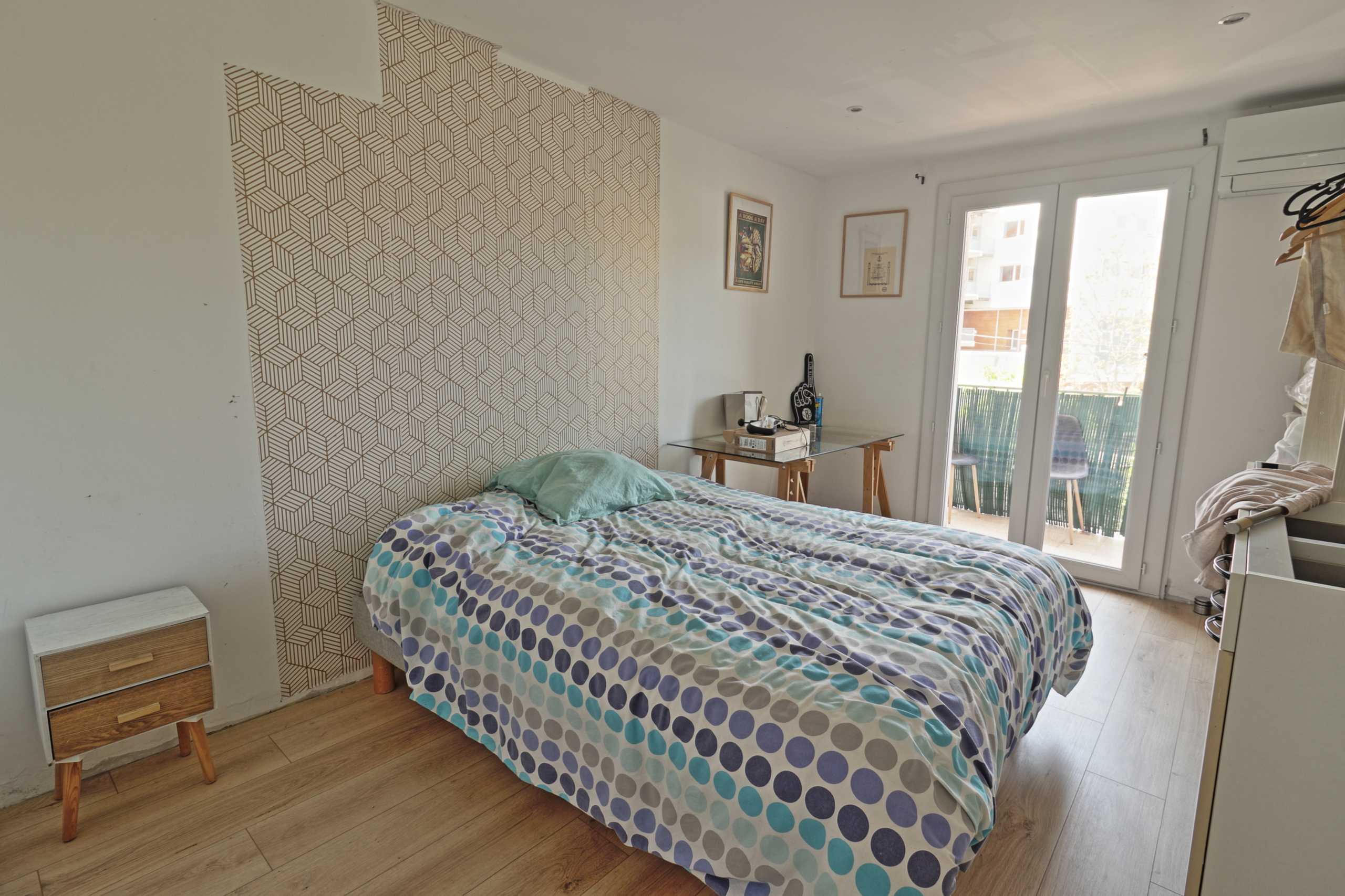 Situé au deuxième étage sans ascenseur sur cinq d’une copropriété sécurisée avec parking, il se compose d’un séjour avec cuisine traversant, de deux chambres, d’une salle de bains, d’un WC séparé, ainsi que d’une loggia et d’un balcon.