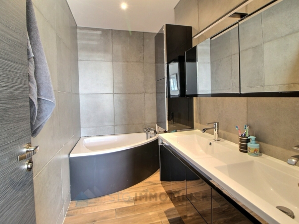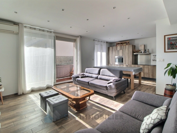 Prestations : Cumulus, climatisation réversible dans le salon, menuiseries PVC double vitrage, volets roulants électriques, carrelage, digicode, parking.