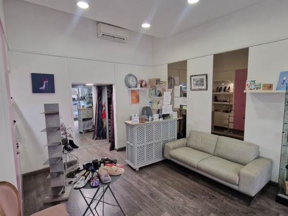 Ce local commercial d’une surface de 22 m² environ se compose d’un espace de vente, d’une réserve avec WC + lave mains et d’une mezzanine au-dessus de la réserve (Hauteur sous plafond 1.65 m).