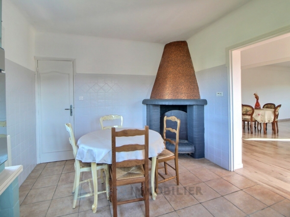 Agencé comme suit : une véranda donnant accès au hall d’entrée, lequel distribue une cuisine indépendante équipée d’une cheminée et prolongée par un cellier attenant, un WC séparé ainsi qu’un séjour/salle à manger d’une surface de 26,85 m².