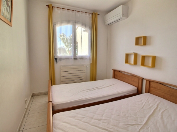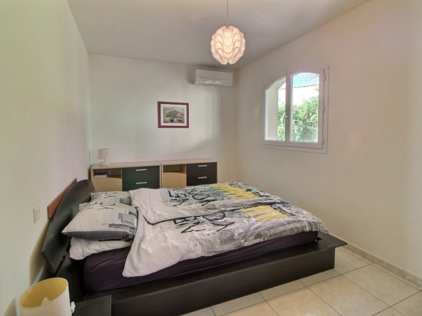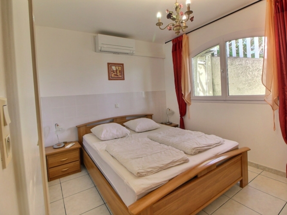 Elle se situe à seulement 200 mètres de la plage, accessible à pied en quelques minutes, offrant un cadre de vie privilégié entre mer et douceur méditerranéenne.