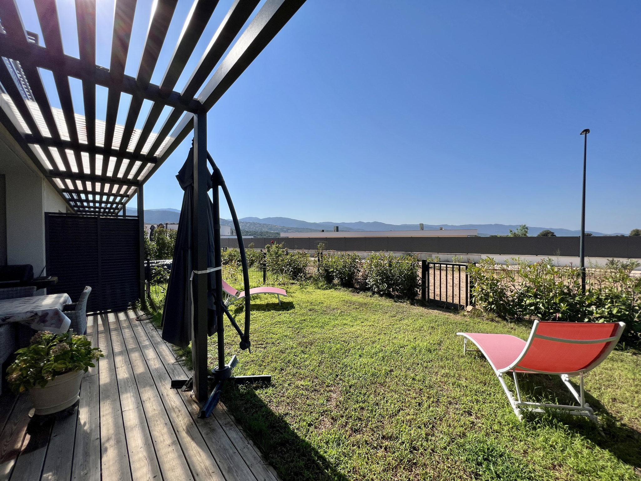 Positionné de plain-pied, cet appartement bénéficie d’une grande terrasse de 20 m2 ainsi que d’un petit jardin cloturé en jouissance privative