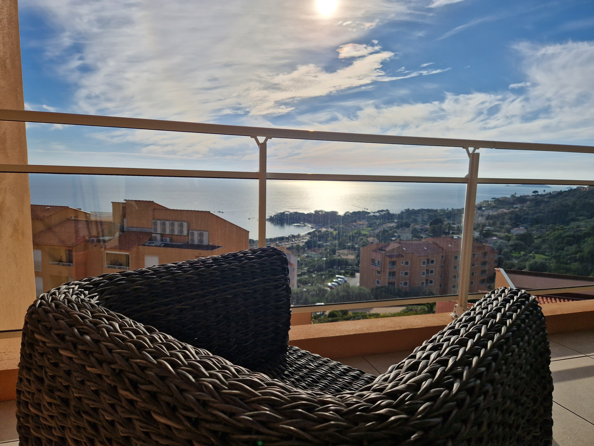 -Une belle terrasse de 15 m2 accessible depuis le séjour et la chambre vous permettra de profiter d’une jolie vue sur la mer.